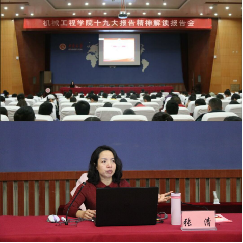 11月18日,机械工程学院于图书馆五层报告厅开展19大报告精神解读报告活动。报告会嘉宾为院党委书记张清,全院学生党员和入党积极分子参会学习。