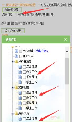 还应添加投递到本科室相应分类栏目(分科室集总或文件汇编或资料下载)。