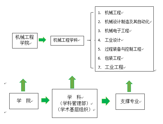 1、本科专业与学科归属 机械工程学院现有一个一级学科,涵盖了7个本科专业,学科及专业架构如下: