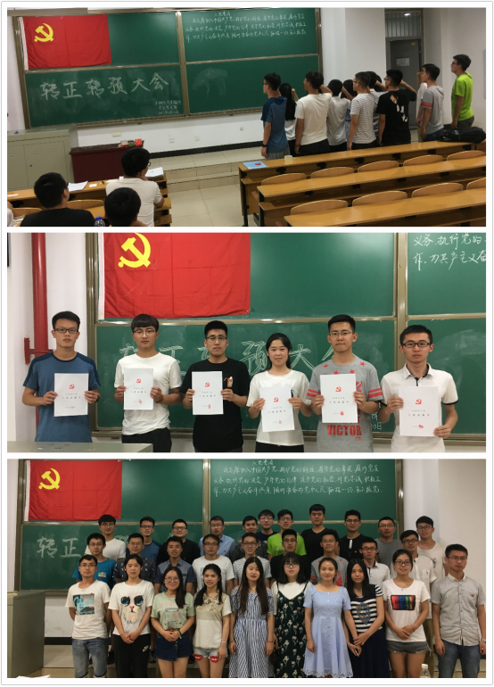 大会最后,由支部宣传委员带领大家宣誓,支部书记李井吉同志做了最后总结,对于各位同志顺利转预转正表示祝贺并寄予厚望,希望他们紧随党的步伐,全心全意为人民服务,争做同学们的表率,严格要求自己。至此大会圆满落幕。