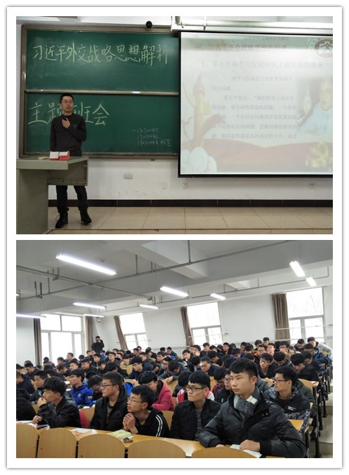 机械工程学院17020045班、17020046班和17020048班于15206H举办了习近平外交战略思想解析主题班会。与会嘉宾有人文社会科学院讲师哲学硕士吉国宾教授,17020045、17020046、17020048班全体学生参与此次班会。