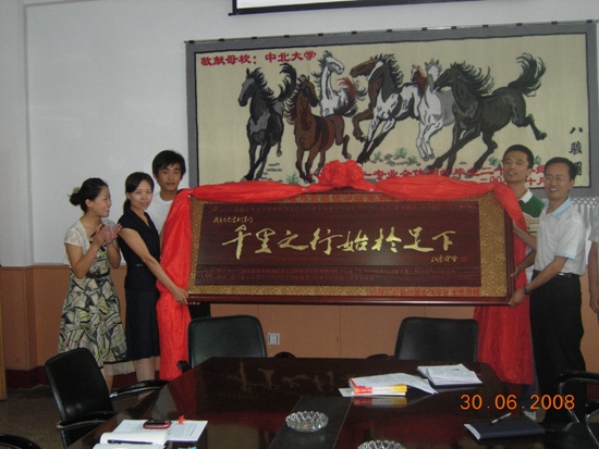 ????? 2008年6月30日上午8点30分,机械工程与自动化学院机械工程系08届毕业生党员捐匾仪式在我院教职工会议室举行。我院各位领导及各系系主任出席了仪式。会议由我院党总支书记王俊元老师主持。机械工程系学生党支部书记张改珍老师和副书记宗超同学做了简短发言,代表毕业生党员表达了对学院深深的感恩和祝福!