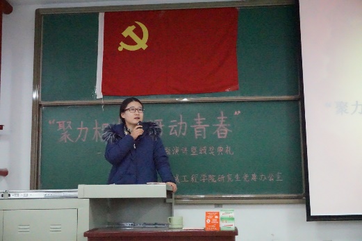 一 二?九爱国运动主题演讲暨“聚力机械?研动青春”长跑运动颁奖仪式在15106教室举行。四个研究生党支部优秀党员代表分别做了慷慨激昂的爱国运动主题演讲。之后苗慧老师为此次长跑活动的获奖同学颁奖,并与之合影留念。