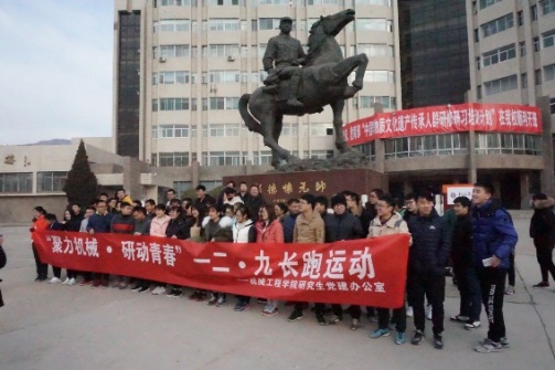 为继承和发扬“一二?九”运动的爱国主义精神,认真落实并贯彻党的“十九大”精神,中北大学机械工程学院研究生党建办公室于2017年12月9日上午9:00举办一二?九爱国运动主题演讲暨“聚力机械?研动青春”长跑运动。出席本次活动的嘉宾有机械工程学院研究生党建办公室苗慧老师。